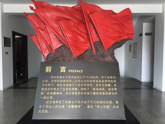 剛進(jìn)門就看到英姿颯爽的女子民兵在廣場(chǎng)上操練,劈槍,端槍,托槍,舉槍敬禮……一套動(dòng)作干凈利落,透出巾幗不讓須眉的干練,她們力求把每個(gè)動(dòng)作都練到極致。“洞頭先鋒女子民兵連”組建于1960年6月。在過(guò)去的歲月中,連防榮獲的榮譽(yù)是不計(jì)其數(shù),連隊(duì)始終堅(jiān)持思想不亂、隊(duì)伍不散、傳統(tǒng)不丟、戰(zhàn)旗不倒,全面建設(shè)過(guò)硬連隊(duì)。女子連官兵巾幗風(fēng)采優(yōu)存,并依然保持著“愛(ài)軍尚武、吃苦耐勞、樂(lè)于奉獻(xiàn)、永葆本色”的“海霞精神”。