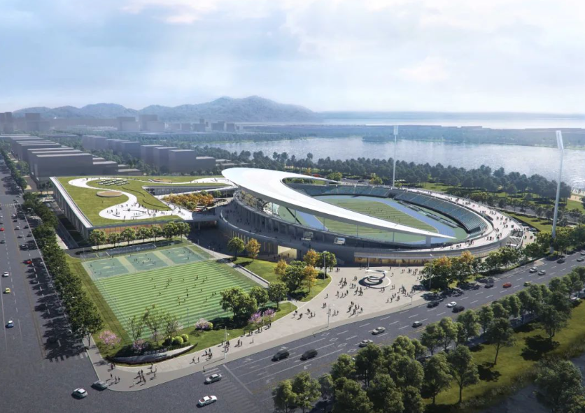 龍港體育中心是龍港市重大民生工程,坐落于溫州龍港市龍港新城片區(qū),項目總占地面積11.19 萬㎡,總建設(shè)面積7.85萬㎡,其中體育場建筑面積3.3萬㎡,罩棚面積約1.1萬㎡,主體面積約2.2萬㎡,除帶有罩棚看臺和16000座位的體育場外,還包括帶有室內(nèi)游泳池、各類球類運動場館以及零售空間的全民健身中心。